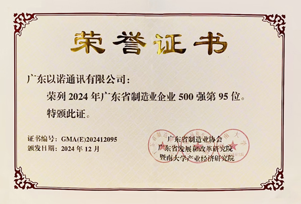 “廣東省制造業(yè)企業(yè)500強”榜單由廣東省制造業(yè)協(xié)會聯(lián)合相關機構發(fā)布,旨在貫徹落實黨的二十大精神和高質(zhì)量發(fā)展要求,通過嚴格的數(shù)據(jù)采集與專家評審,全面反映廣東制造業(yè)的競爭力與發(fā)展趨勢。榜單自2013年啟動以來已連續(xù)發(fā)布12年,是政府政策制定和行業(yè)前沿研究的重要參考。以諾通訊憑借持續(xù)創(chuàng)新和穩(wěn)健發(fā)展躋身前百強,這一榮譽是對企業(yè)技術實力和行業(yè)貢獻的高度肯定。